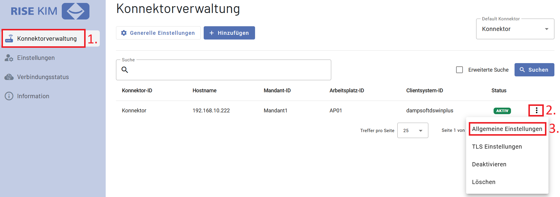 Nach dem erfolgreichen Login den Menüpunkt „Konnektorverwaltung“ auswählen.